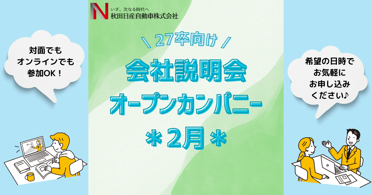 【27卒向け・2月】『会社説明会・オープンカンパニー』予約受付中!